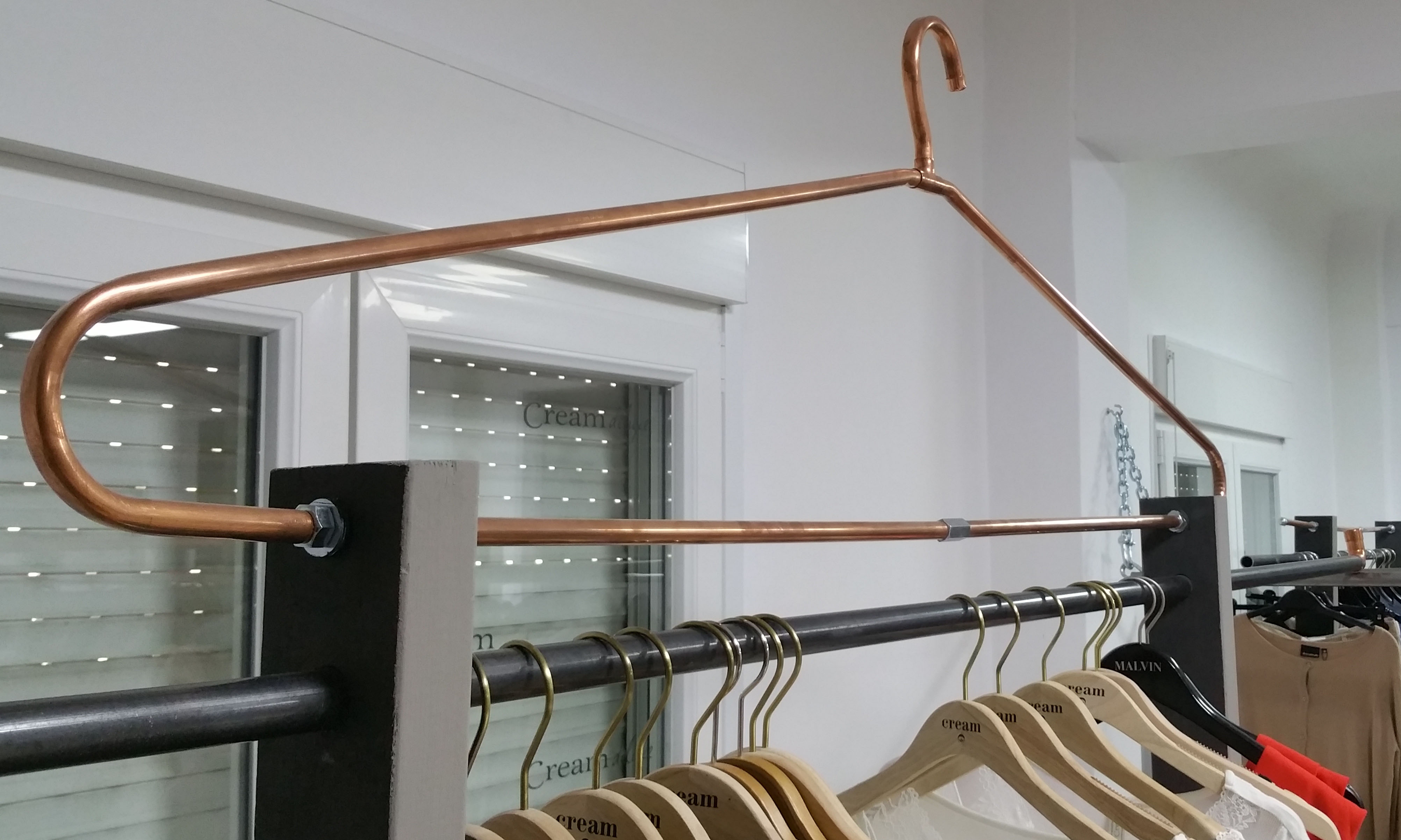 Transform company logo in hanger shape from digital logo, to physical. Using copper pipe, cutter, bender and a lot of creativity.